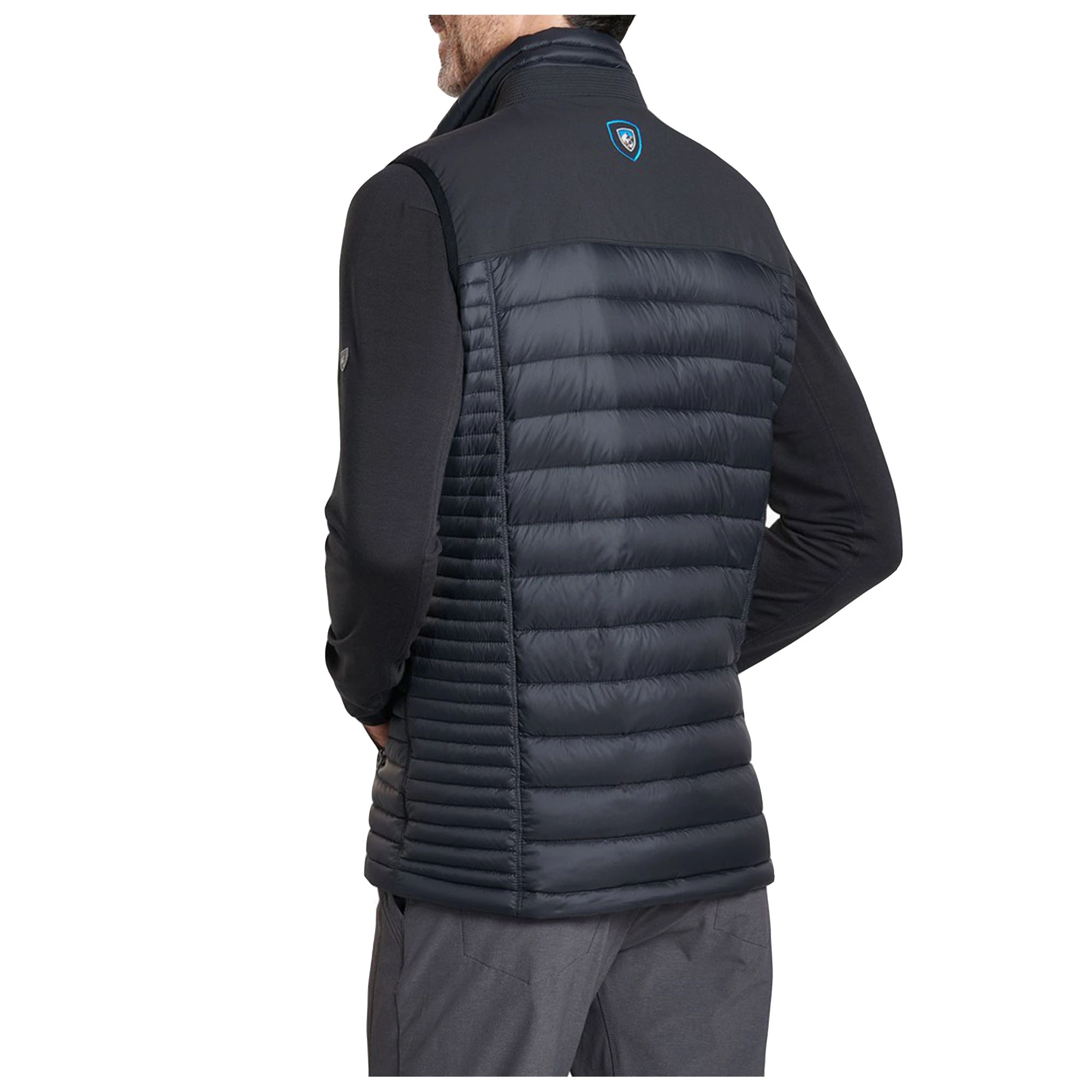 The KUHL Men’s Spyfire Down Vest combines superior fabrics, articulated patterning, and thermal body mapping to deliver high performance with unmatched style! Three unique fabrics, each engineered for a specific purpose, differentiates the down from others. MIKROTEX nylon shell is woven extremely tight to provide durable down proofing with wind and water resistance. The body front has an additional overlay for extra protection against the elements. TUFFLEX softshell reinforced shoulders allow you to carry skis or equipment that would shred any ordinary down sweater. Lightweight underarm knit panels allow heat to escape for better climate control and comfort in a wide range of temperatures. The responsibly sourced (non-force-fed/not ‘live-plucked’) 800-fill goose down provides a superior warmth-to-weight ratio. With thermal body mapping design, the Larger baffles at the front and back body provide core warmth. The KUHL Men’s Spyfire Down Vest features thinner, sized-down baffles on the side body that provide a contoured fit and reduce bulk for improved layering.